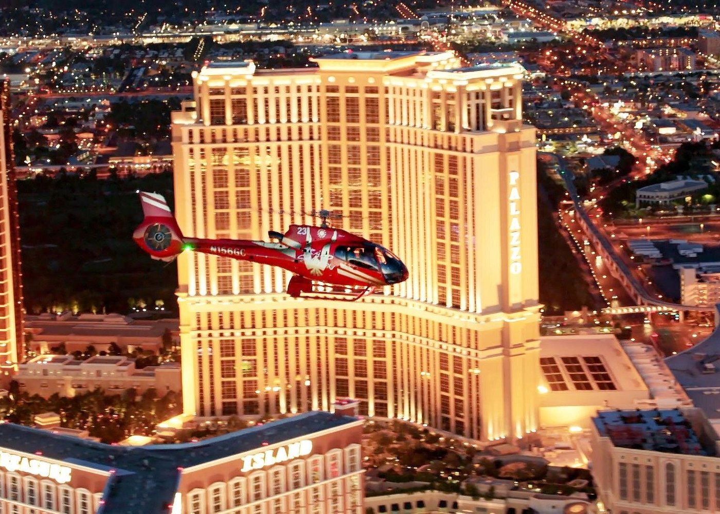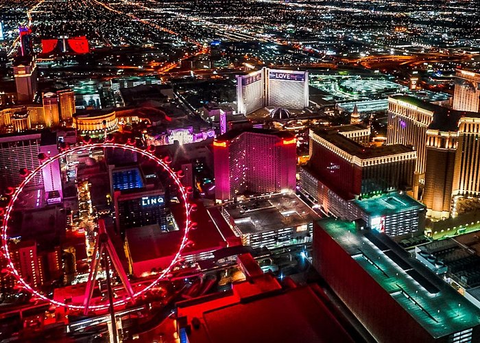 Soar above downtown Las Vegas, where you’ll spot the illuminated LED canopy of the Fremont Street casinos—coined Glitter Gulch—as well as the Stratosphere Las Vegas, which towers more than 1,000 feet (305 meters) high. After about twelve minutes in the air, land back at the terminal, where you’re either driven to your hotel or are free to continue your night out on the Strip from the heliport, depending on option selected when booking.Mirage Volcano (Pass By)Enjoy iconic sights during the helicopter flight. Paris Las Vegas (Pass By)Incridible photo moments during the flight.Las Vegas Downtown (Pass By)Enjoy sights over Downtown Las Vegas. Stratosphere Tower (Pass By)Loop around The Strat during the helicopter flight.